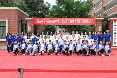 8月13日上午,瑞安中学附属初级中学(瑞安市ag亚娱中学[筹])揭牌仪式隆重举行。瑞安市教育局党委书记、局长王心海,教育局党委委员、副局长蔡文勇,瑞安中学校长王安国、瑞中附初虞文斌校长和ag亚娱集团高级副总裁尤金焕等校企领导,以及家长代表、学生代表和全体教师参加了揭牌仪式,共同见证这一荣耀时刻。