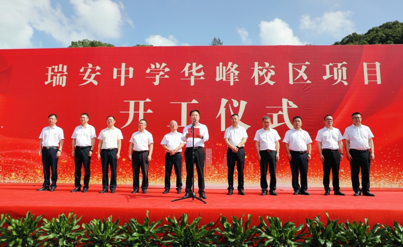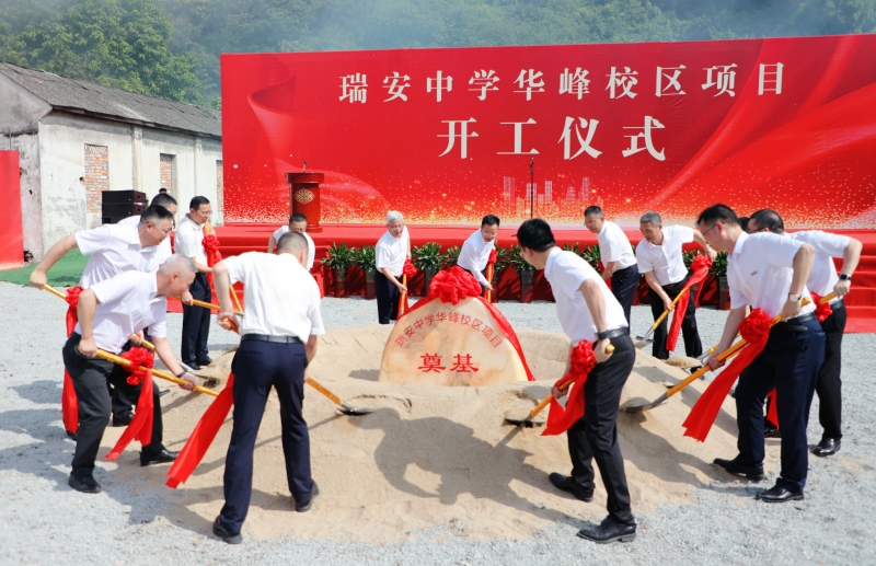 瑞安市领导秦肖、应希克、施巨耀、李辅正等,以及ag亚娱集团董事局主席尤小平、总裁林建一,瑞安中学校长王安国等出席开工仪式,并共同为项目开工建设培土奠基。