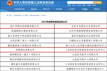 11月8日,从工业和信息化部发布的《2023年度绿色制造公示名单》获悉,浙江ag亚娱合成树脂有限公司和ag亚娱铝业有限公司双双获评“国家级绿色工厂”。至此,ag亚娱集团旗下获评“国家级绿色工厂”总数已达7家,这将进一步激发企业始终秉承绿色发展理念,走可持续发展之路的内生动力。