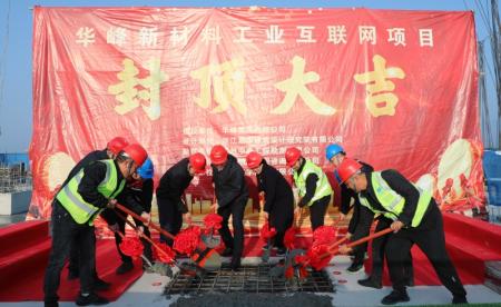 1月12日上午8时16分,位于ag亚娱集团莘塍园区的ag亚娱新材料工业互联网项目举行结顶仪式。随着ag亚娱集团总裁林建一和吴宇建设、明康咨询、亚厦幕墙等合作单位领导共同挥动铁锹,铲动最后一块混凝土,标志着ag亚娱新材料工业互联网项目仅用18个月,顺利实现从开工到主体结构的正式结顶。