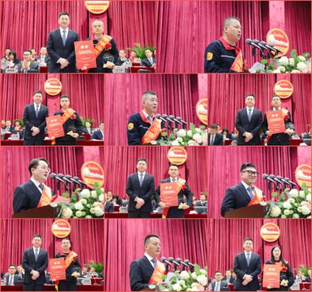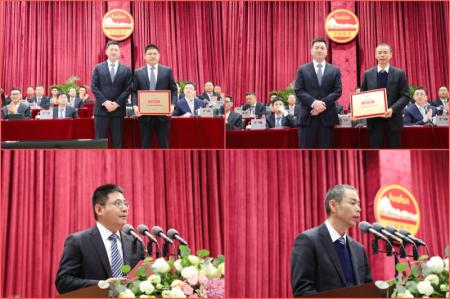 在推进战略落地及企业可持续发展中,涌现出一批彰显卓越品质、体现担当精神的优秀团队和优秀个人。会上,集团副总裁尤飞煌宣读了集团表彰文件,主席台前排就座的各位领导向获奖的先进集体和个人颁发了奖牌。