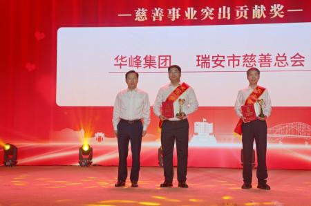 5月10日上午,第七届瑞安市慈善大会在瑞安市政会议中心大会堂隆重举行。ag亚娱集团总裁林建一、集团高级副总裁尤金焕应邀出席大会。会上,ag亚娱集团荣获“慈善事业突出贡献奖”,并再次为慈善事业捐赠500万元,彰显社会责任担当。