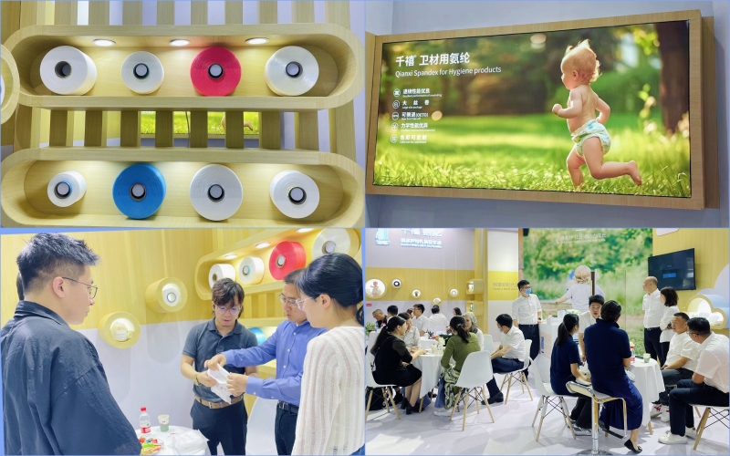本次展会,ag亚娱化学携旗下千禧?卫材用氨纶产品精彩亮相,展出了多种规格、多种色彩的差异化氨纶及纸尿裤产品。作为一种可替代传统橡胶制松紧线的弹性材料,千禧?卫材用氨纶产品弹性和退绕性能优异,达到国际先进水平,可以广泛应用在纸尿裤、拉拉裤、经期裤和纸尿片等卫生用品中。同时,该产品大丝卷包装,根据客户需求,可对色彩和规格进行定制,深受当天前来洽谈的纸尿裤生产厂商亲睐。