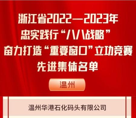 近日,浙江省人民政府发文对2022-2023年忠实践行“八八战略” 奋力打造“重要窗口”立功竞赛先进集体和先进个人予以通报表彰。温州华港石化码头有限公司作为洞头区唯一先进集体光荣上榜。