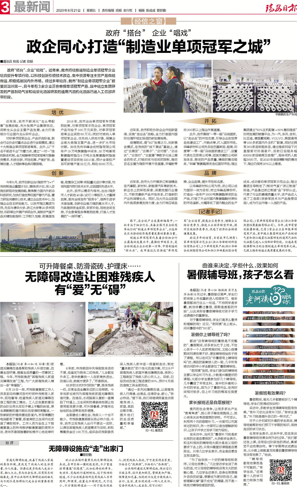 (本文原载于2020年8月21日《瑞安日报》通讯员 程前 记者 项颖)